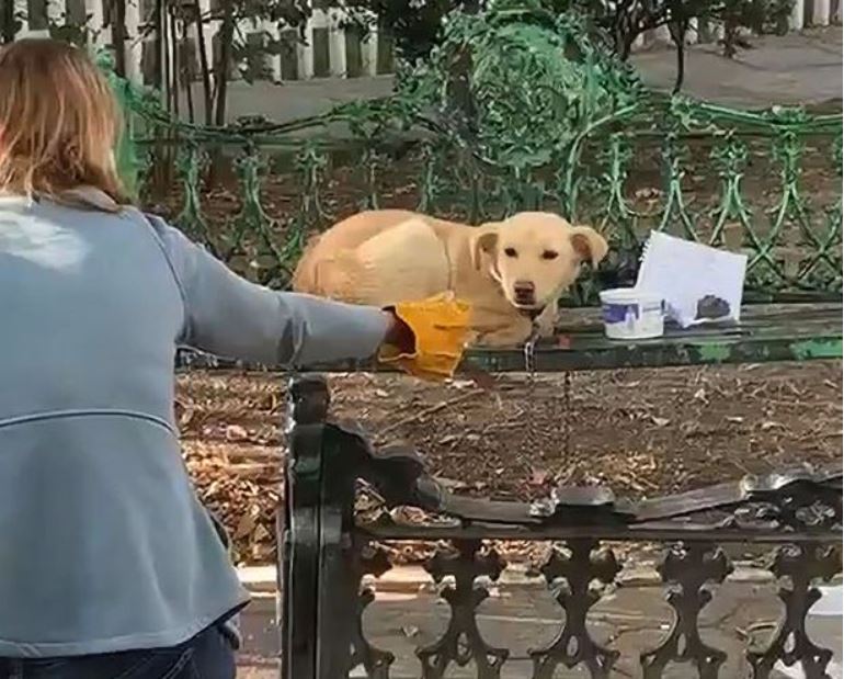 ମହିଳା ସେହି କୁକୁର ପାଖକୁ ଯିବାପରେ କୁକୁରଟି ଡରୁଥିବାର ଦେଖାଗଲା । ତାକୁ ଦେଖି ଏପରି ଲାଗୁଥିଲା ଯେପରି ସେ ବହୁତ୍ ସମୟ ହେଲାଣି କିଛି ବି ଖାଇ ନଥିଲା ଏବଂ ସେ ଶୋଷିଲା ମଧ୍ୟ ଦେଖା ଯାଉଥିଲା । ତା ବେକରେ ରସି ବନ୍ଧା ଯାଇଥିଲା ଏବଂ ସେହି ରସୀକୁ ସେହି ବେଞ୍ଚରେ ବନ୍ଧା ଯାଇଥିଲା । ଏହାପରେ ମହିଳା ଚିଠି ପଢ଼ିଲେ, ସେତେବେଳେ ଯାଇ ତାଙ୍କୁ ସବୁ କଥା ଜଣାପଡ଼ିଲା ।