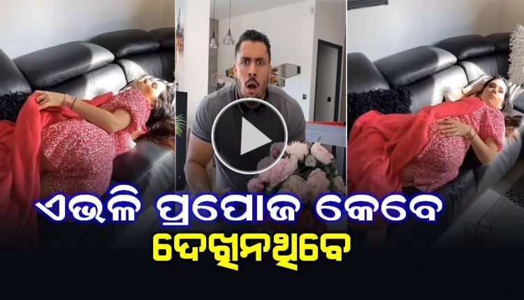 Entertaining Viral Video On Instagram: ହାତରେ ମୁଦି ଏବଂ ସୁନ୍ଦର୍ ଫୁଲର ବୁକେ ନେଇ ଜଣେ ଯୁବକ ବହୁତ୍ ଆଶାରେ ନିଜ ସାଙ୍ଗକୁ ପ୍ରପୋଜ କରିବାପାଇଁ ତାଙ୍କ ଘରେ ଅଚାନକ ପହଞ୍ଚି ଯାଆନ୍ତି । ଯୁବତୀଙ୍କୁ ସୋଫା ଉପରେ ଆରାମରେ ଶୋଇଥିବାର ଦେଖାଯାଇପାରେ ।