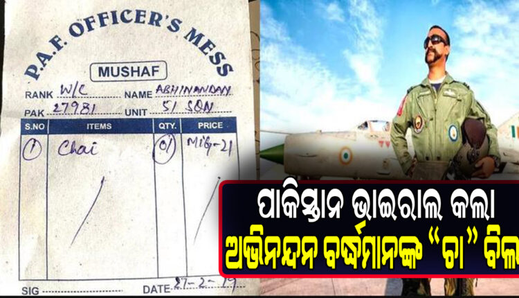 ସାମ୍ନାକୁ ଆସିଲା ପାକିସ୍ତାନର ଆଉ ଏକ ଚେହେରା: ଅଭିନନ୍ଦନ ବର୍ଦ୍ଧମାନଙ୍କୁ ପିଇବାକୁ ଚା’ ର ବିଲ ଭାଇରଲ କଲା,ଦାମ ଜାଣିଲେ ଆଶର୍ଯ୍ୟ ହୋଇଯିବେ ?